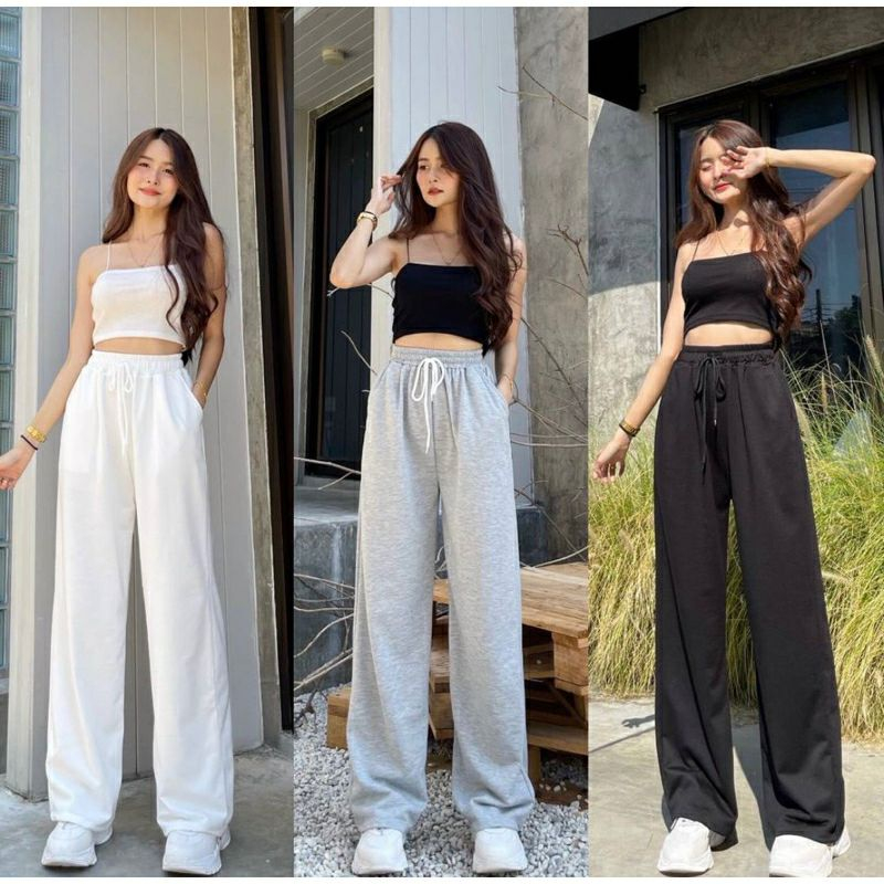 Pakaian Wanita > Celana Panjang & Legging > Kulot > Tory Kulot Sweatpants Track Pants Highwaist Celana Jogger Wide Leg Bahan Babyterry Celana Panjang Kulot Wanita