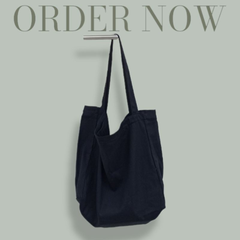 TOTE BAG bahan: canvas polos panjang: 69 cm lebar 14 cm tinggi: 33 cm dengan resleting satu ruang