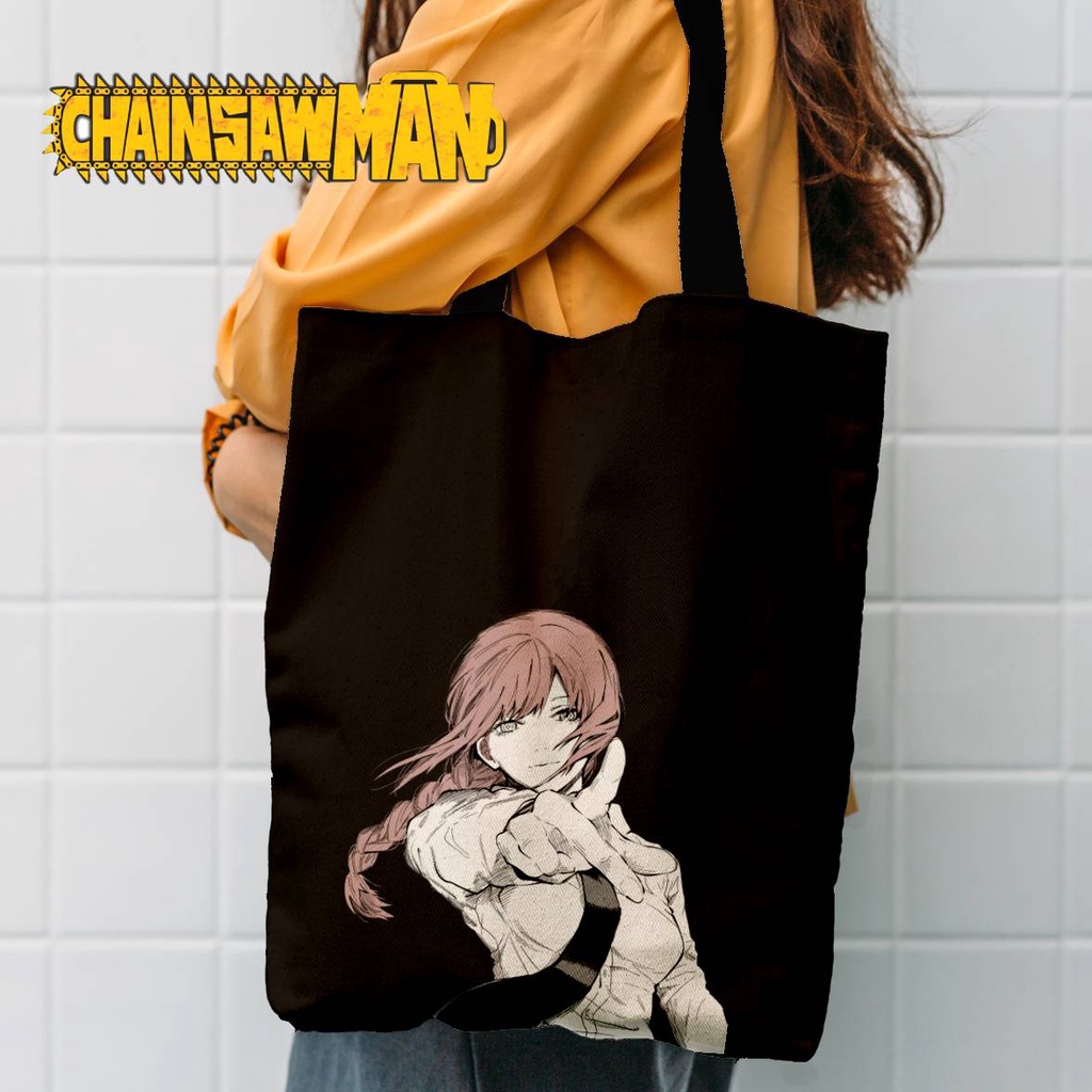 Detail Tote bag Anime Chainsaw man Makima Hitam Tote bag premium Totebag seleting totebag Termurah Bahan Blacu