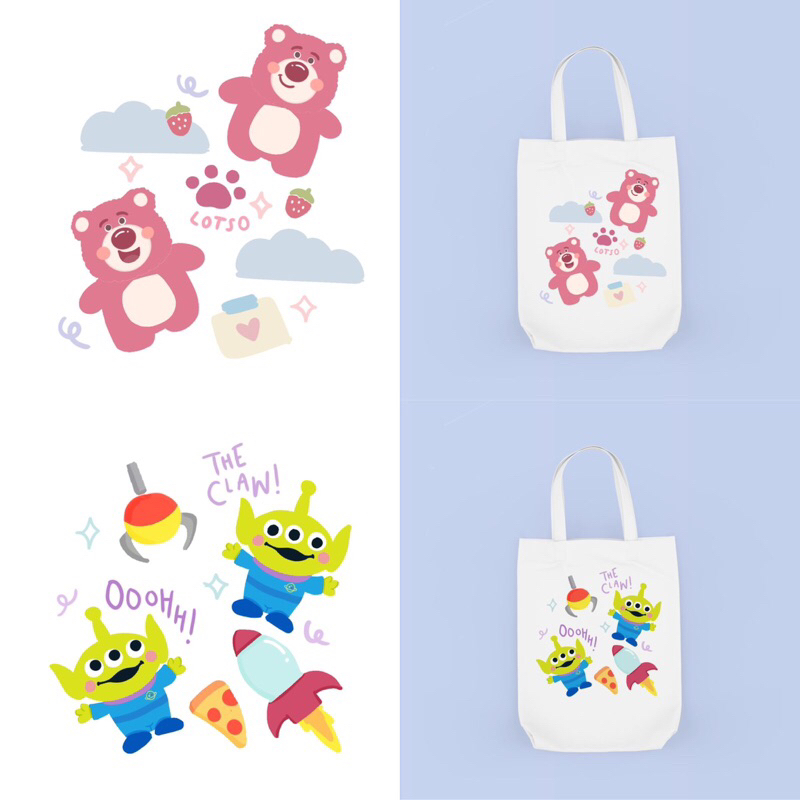 Detail Tote Bag Bergambar Cute Doodle Disneyy/Toy Story/ Winnie the Pooh/ Stitch/ Monster inc/ Chipmunk/ Micky Mouse