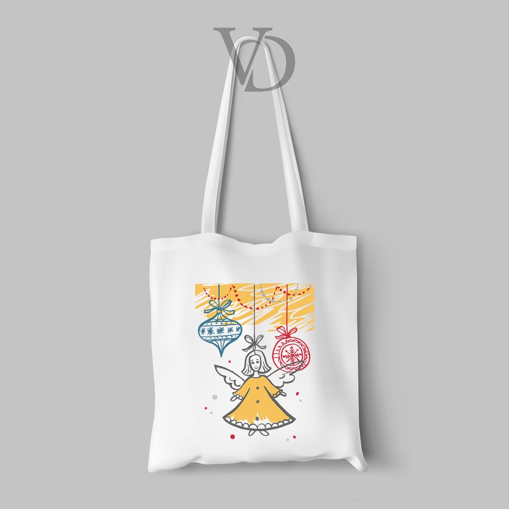 Detail tote bag kanvas natal edisi 2022 / tas belanja gambar christmas versi 2 / totebag cute