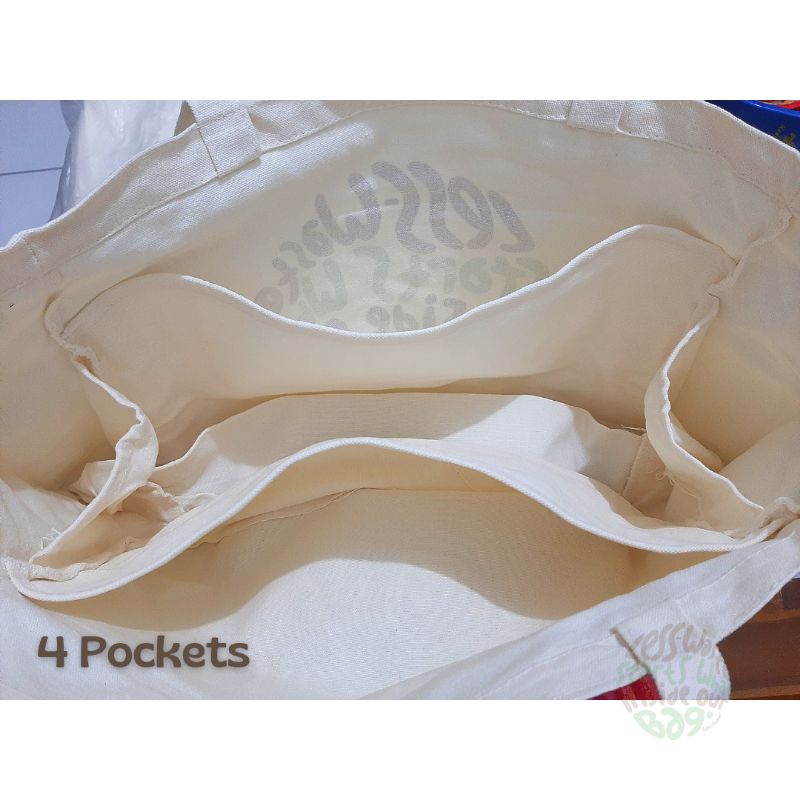 Spesifikasi produk: • Casual style • Tanpa zipper / perekat / magnet • Material: Natural canvas. Tebal bertekstur. Bukan kain belacu, bukan kain drill. • Warna: Beige (Warm White) • Ukuran: 40(p)*15(l)*30(t) toleransi 1-2 cm. • Berat: 290 gr. • Desain ada 4 varian dengan print digital pada 1 (satu) sisi. 1) Warna Beige: Less Waste Starts What Inside Our Bag 2) Warna Beige: Minimal Living Tokyo 3) Warna Brown: Nana korobi, ya oki 4) Warna Black: Fall 7 times, stand up 8 • Kapasitas hingga 10 kg. • Serbaguna: hang out bag, school bag, travel bag, office bag, shopping bag (serbaguna). • Ada 5 kantung/sekat. 1 kantung besar (muat laptop 14 inch) dan 4 kantung kecil bisa disesuaikan penggunaannya (tumbler, botol minum, payung, mukena, glasses box, pouch kosmetik, hand sanitizer, dan barang-barang esensial lain saat outing). Kamu bisa menemukannya dengan mudah tanpa perlu mengaduk-ngaduk seisi tas. • You can keep everything separate and organized! ❤ • Real picture dan real video