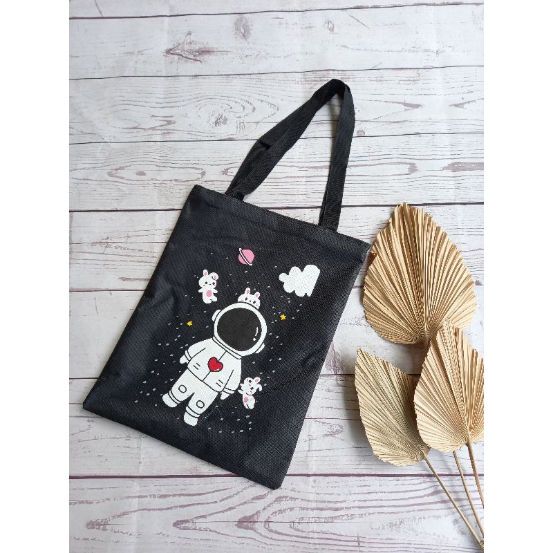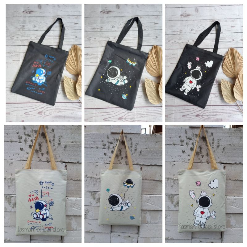 Detail Tote bag Resleting Totebag Wanita Tas Kuliah Astronot Series