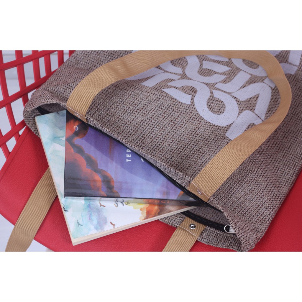 TOTE BAG WANITA TOTE BAG PRIA CANVAS MOTIF GOOD QUALITY WITH RESLETING KODE - 006