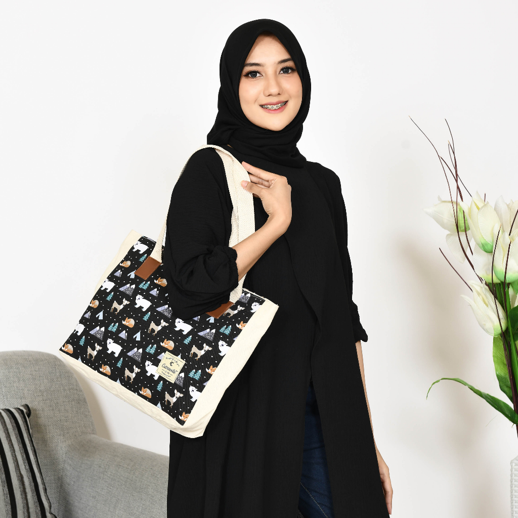 Model tote bag kanvas CASUAL cocok buat kamu yang suka bepergian tapi gak mau pake tas ribet .