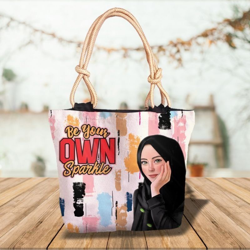 Detail Totebag Kanvas tali sumbu tas wanita motif hijab