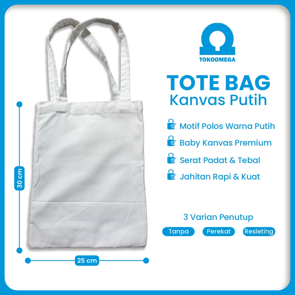 Totebag Polos Kanvas Putih Ukuran 25 x 30 Cm Tas Tote Godie Goodie Bag Goodiebag Jinjing Tenteng Resleting Untuk Sekolah Kuliah Pria Wanita