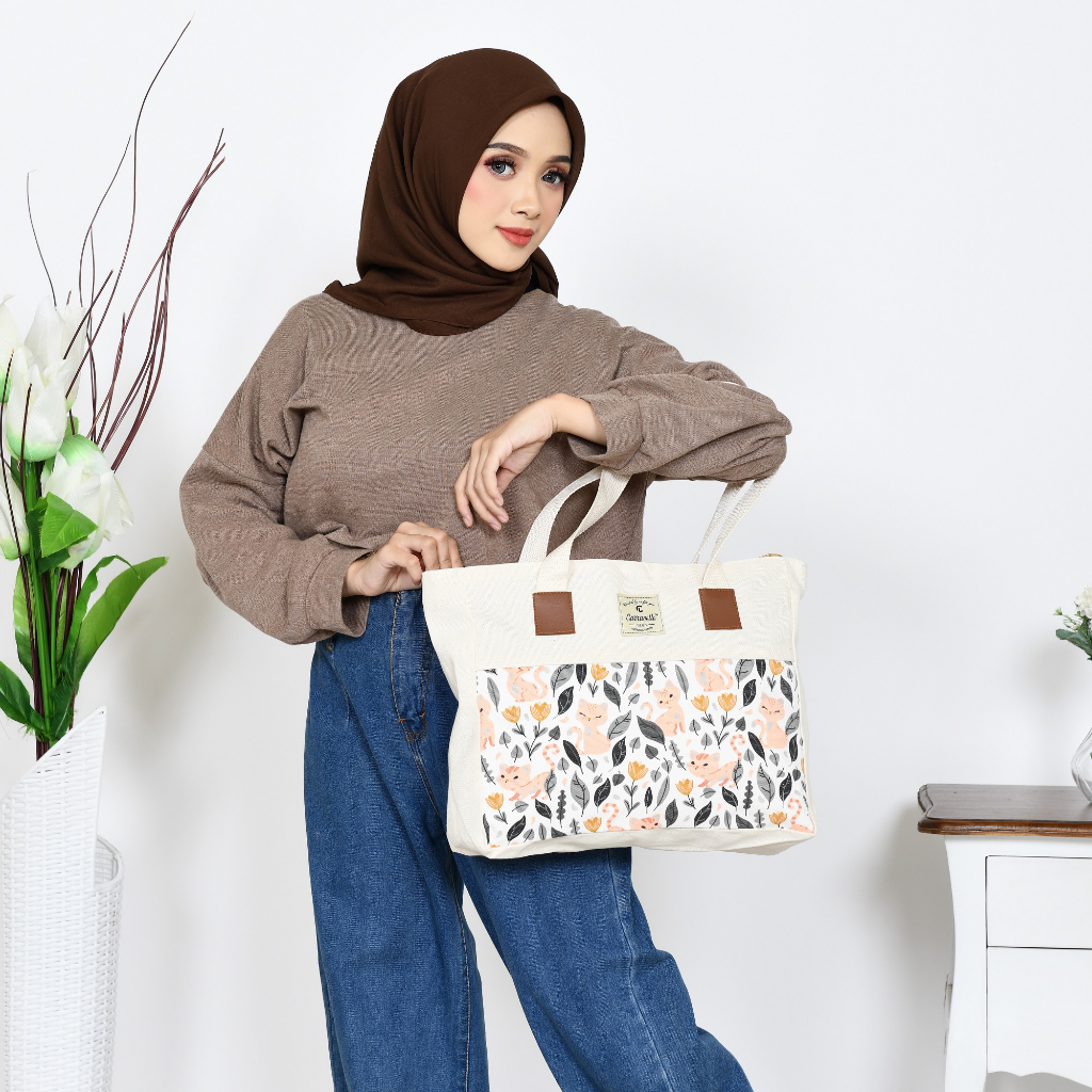 Model tote bag kanvas CASUAL cocok buat kamu yang suka bepergian tapi gak mau pake tas ribet .