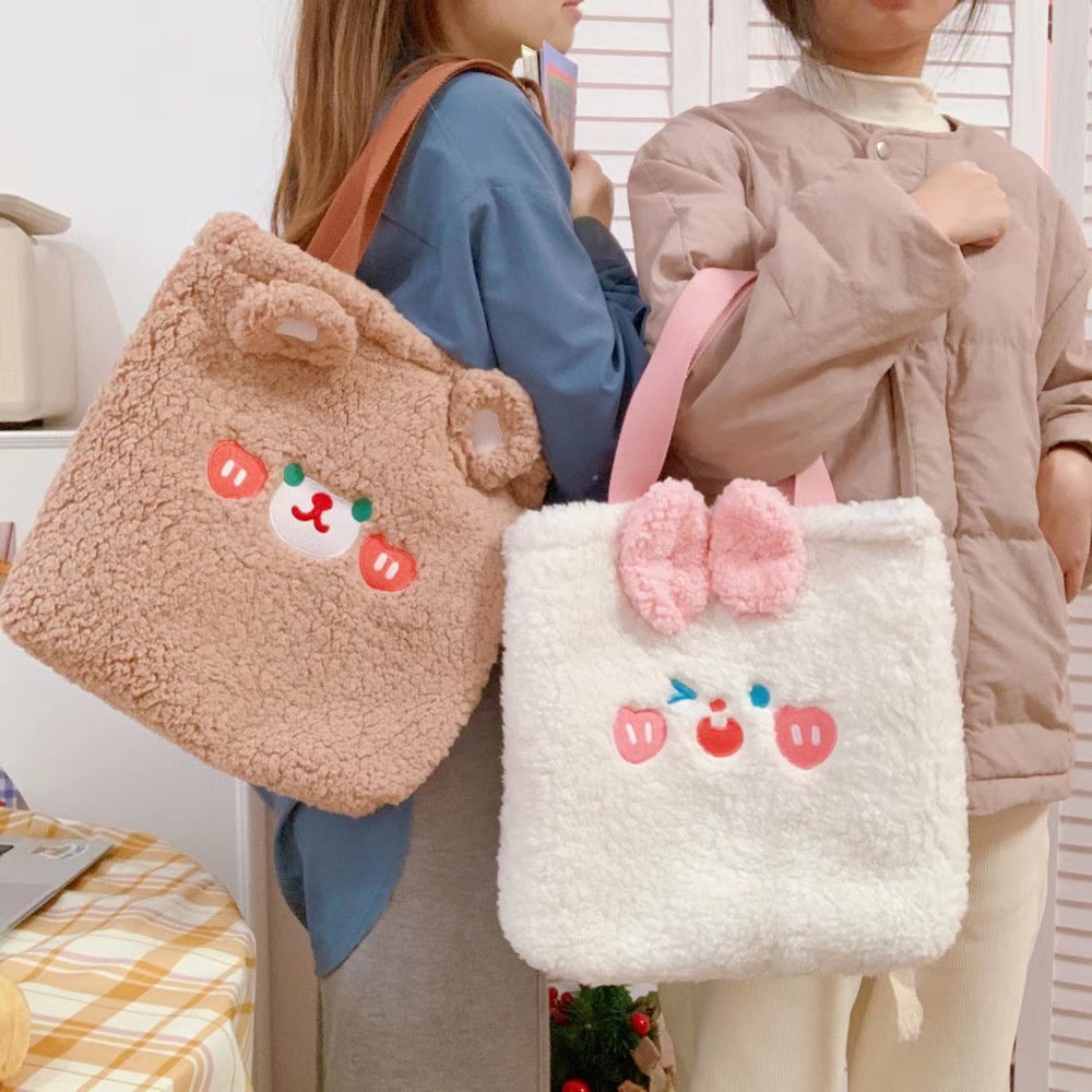Detail Totebag Wanita Plush Cute Bunny & Bear Korean Style Import