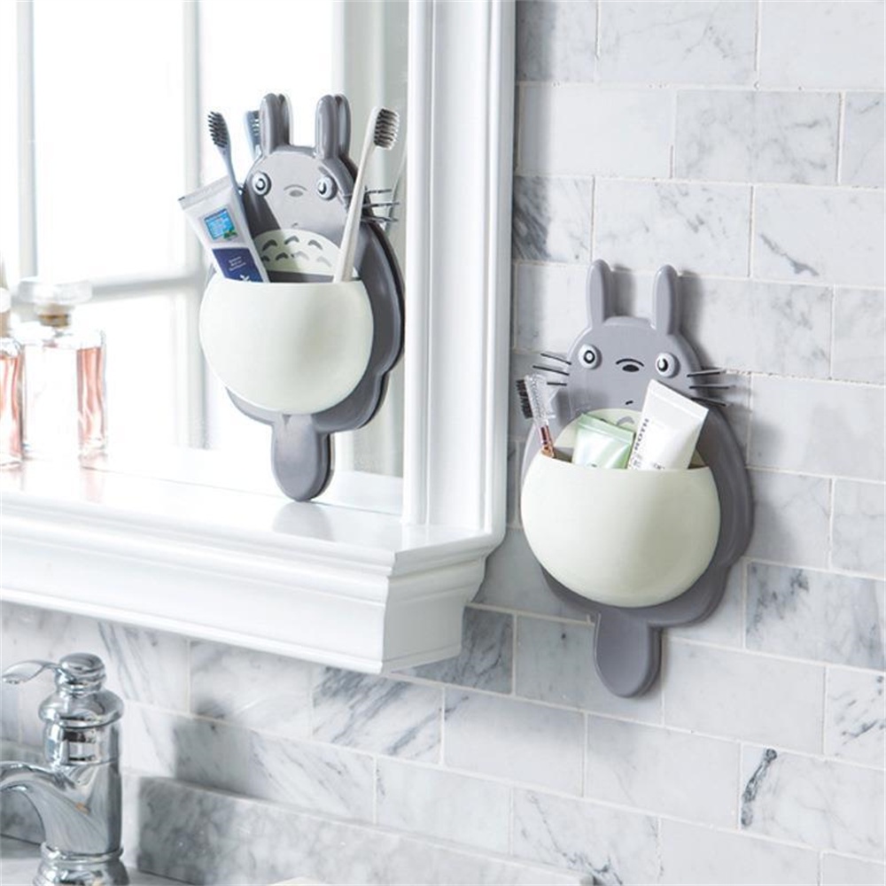 Detail ღ Totoro Suction Piala Sikat Gigi Pemegang Dinding Sikat Gigi Rak Pukulan Gratis Pasta Rak Dinding Kamar Mandi Kotak Penyimpanan Kamar Mandi penyimpanan Aksesoris