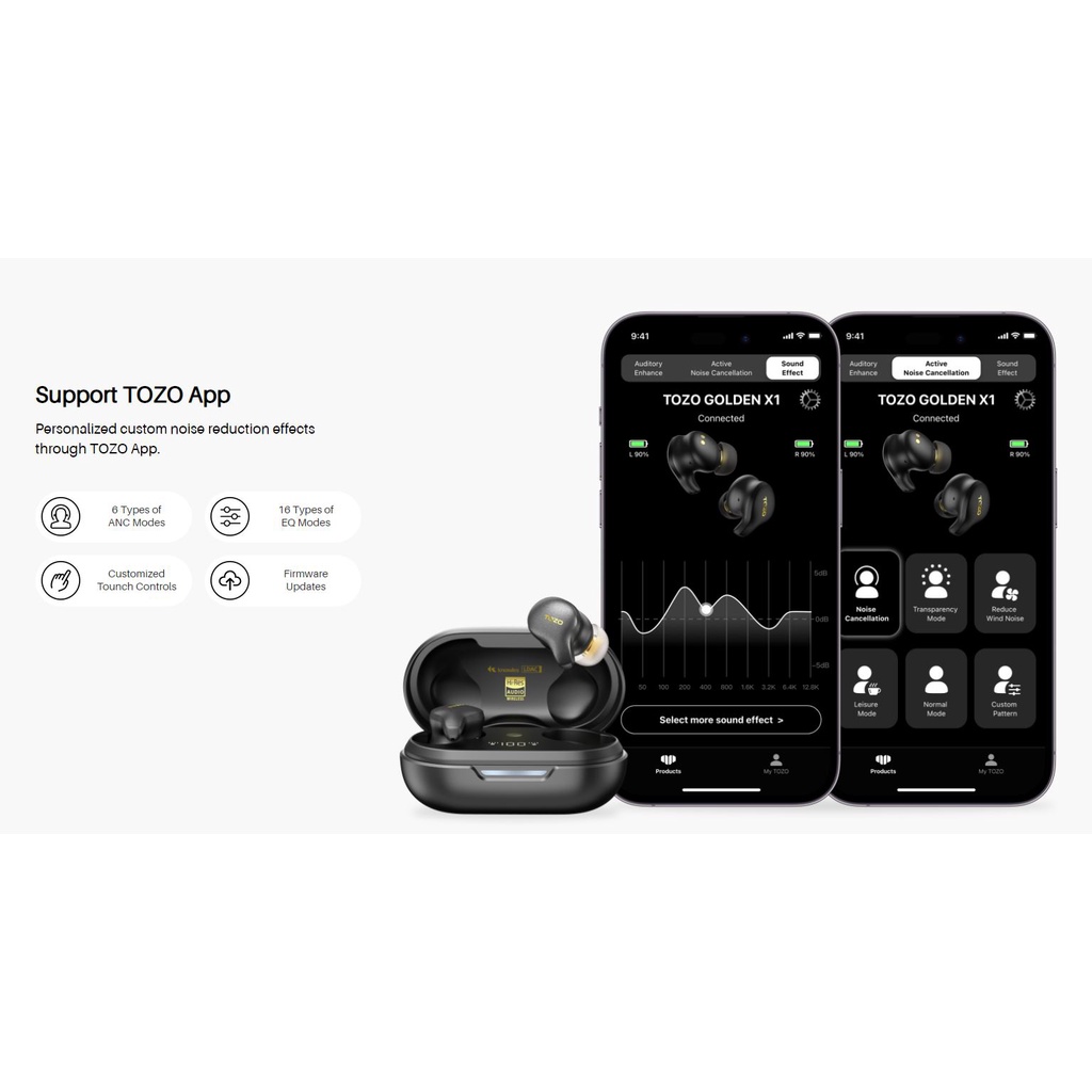 Support TOZO App Personalized custom noise reduction effects through TOZO App.