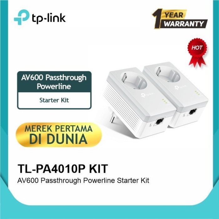 What This Product Does The TL-PA4010P KIT turns your existing powerline into a high speed network with no need for new wires or drilling. No configuration is required, simply plug your adapter into your power socket and you can establish networking infrastructure in a flash. In additon, its integrated power socket makes sure that no power outlet is going to waste. With speeds up to 600Mbps and 300 meters over the household electric wires, the TL-PA4010P KIT is a great choice for an easy to build multimedia entertainment network.
