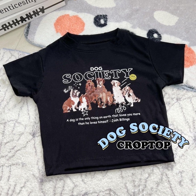 Tq88indonesia Baju Kaos Crop Top Wanita DOG SOCIETY RIB / Busana Kasual Oblong Cewek / OotdTq88indonesia Baju Kaos Crop Top Wanita DOG SOCIETY RIB / Busana Kasual Oblong Cewek / Ootd