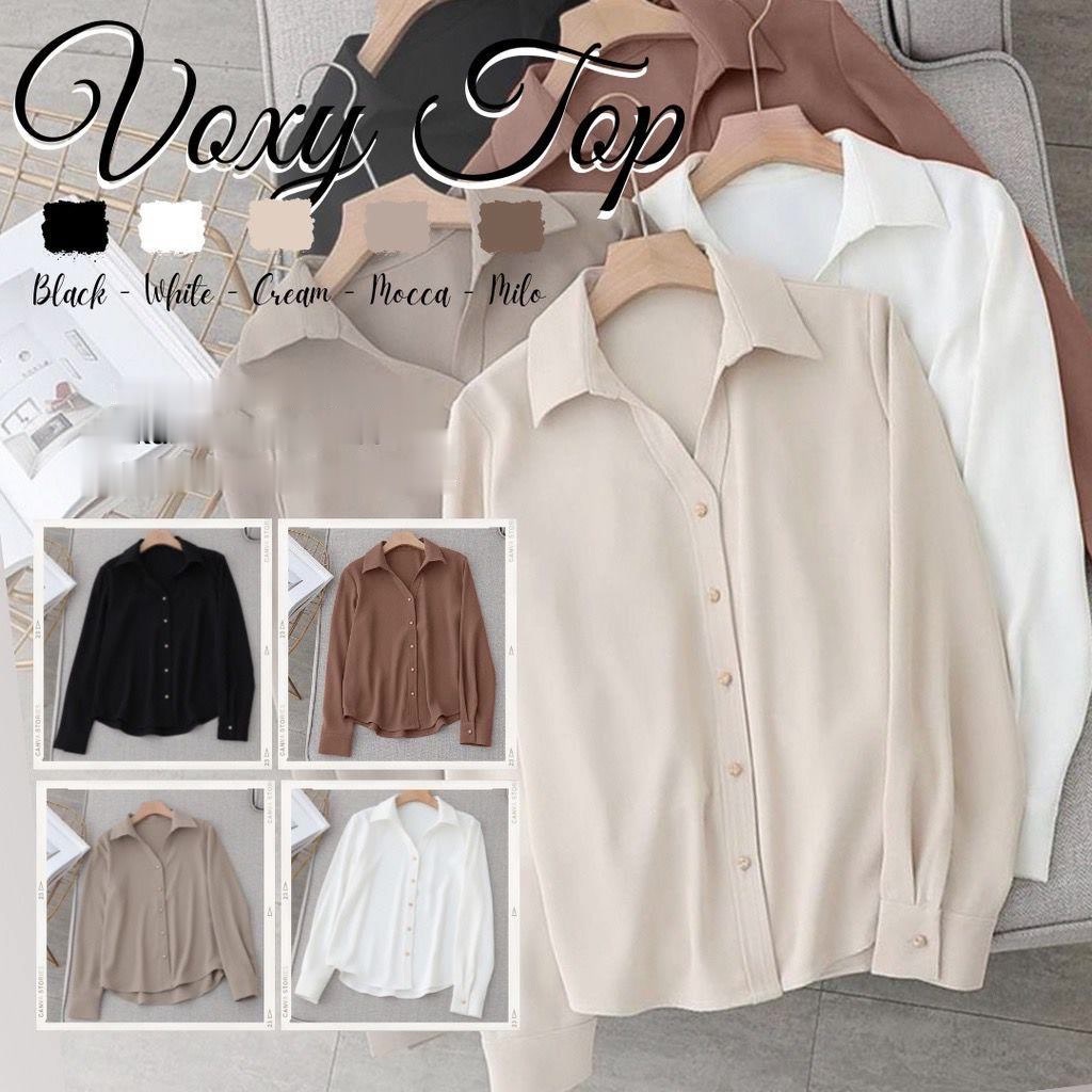 Tq88indonesia Fashion Baju Kemeja Wanita Lengan Panjang / GOLD BUTTON VOXY SHAKILA SHIRT / Kem / Hem Polos Putih Cewek / Ootd / Outfit Kasual Kekinian