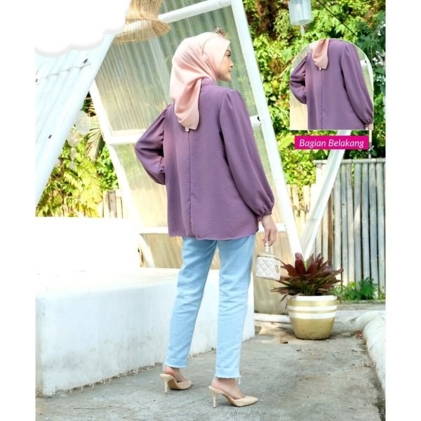 Tq88indonesia Fashion Baju Atasan Wanita Terbaru / Zilva Blouse / Blus Polos Lengan Panjang / Busana Casual Cewek / Ootd / Outfit Kasual Kekinian