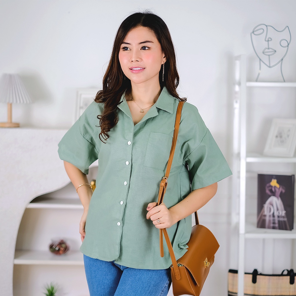 Tq88indonesia Fashion Kemeja Wanita Lengan Pendek Terbaru / Lynn Oversize Shirt Crincle Shirt / Hem /Kem / Busana Casual Cewek / Ootd / Outfit