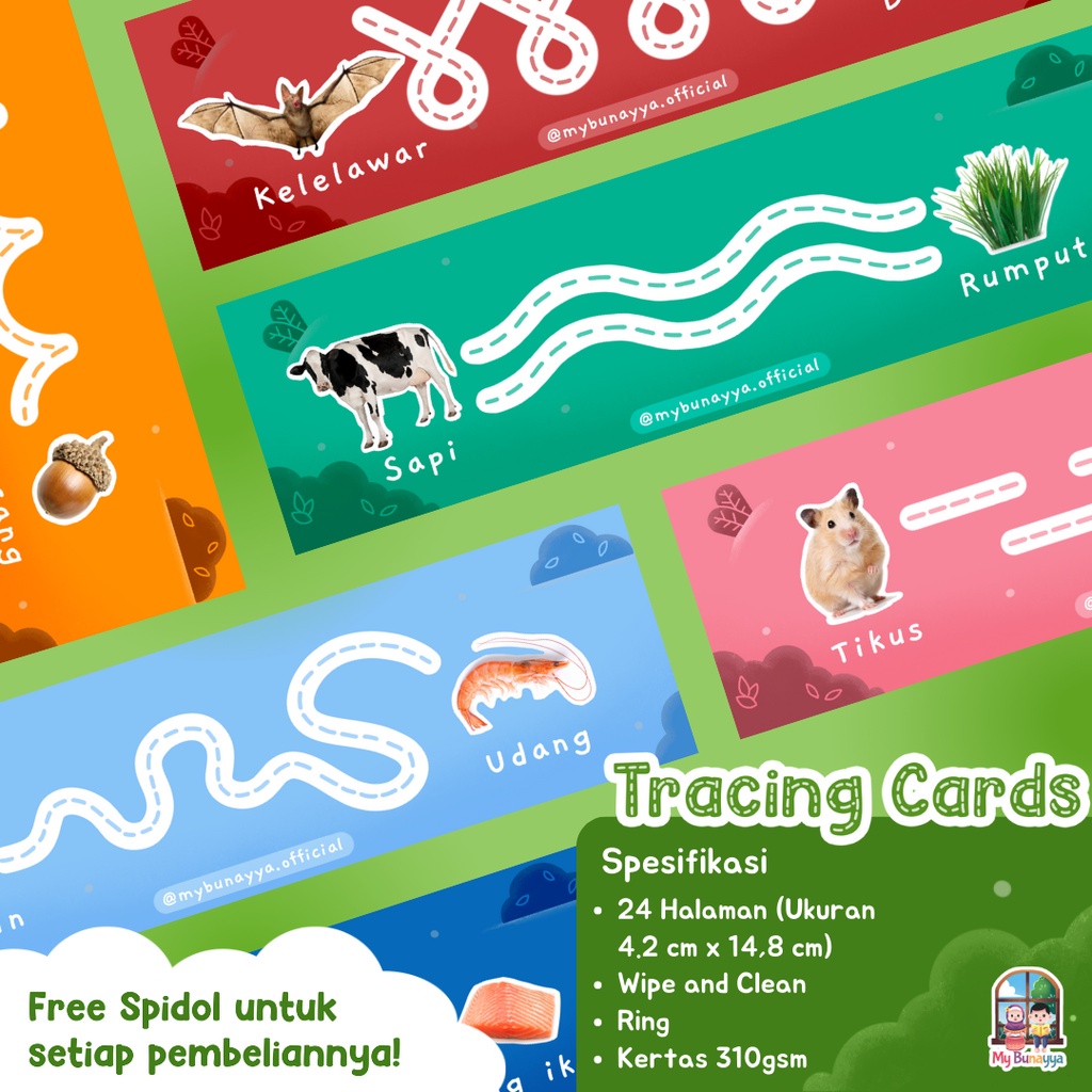 Tracing Cards dapat apa saja? π‘ 24 Lembar (Ukuran 4.2 cm x 14,8 cm) π‘ Wipe and Clean π‘ Ring π‘ Kertas 310gsm π‘ FREE SPIDOL