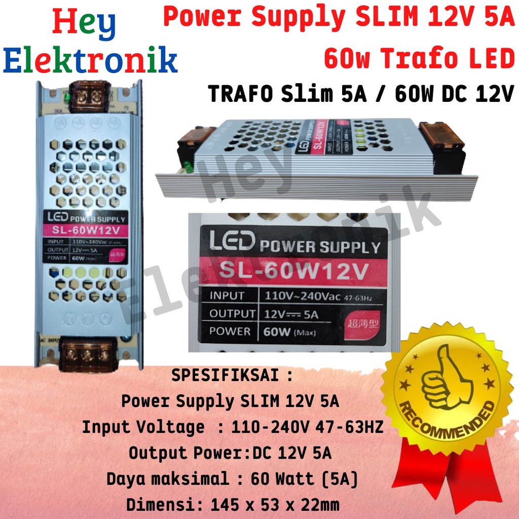 Trafo Power Supply Slim 12V 5A 8.5A 12.5A