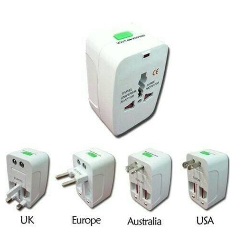 TRAVEL ADAPTOR MULTI COUNTRY Mengkonversi outlet listrik ketika bepergian ke negara-negara lain - Melindungi alat elektronik berharga Anda dari splikes dan lonjakan. - Termasuk kantong perjalanan untuk penyimpanan mudah -. Peringkat listrik: 100 v-250 v (10a) -. Dimensi: 73x48x39mm - Berat bersih: 90g