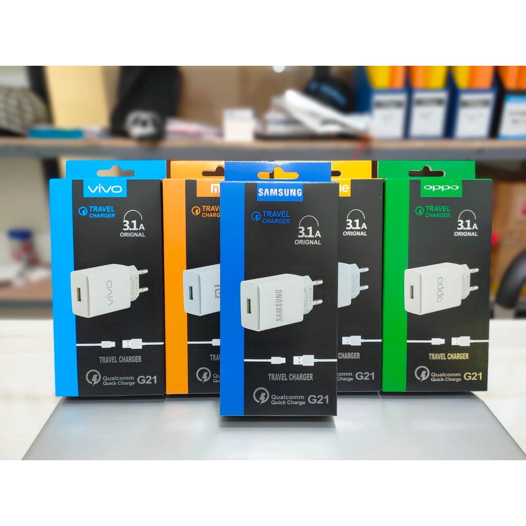 Handphone & Aksesoris > Kabel, Charger, & Konverter > Charger > Travel Charger Brand G21 3,1A Usb micro Packing Import