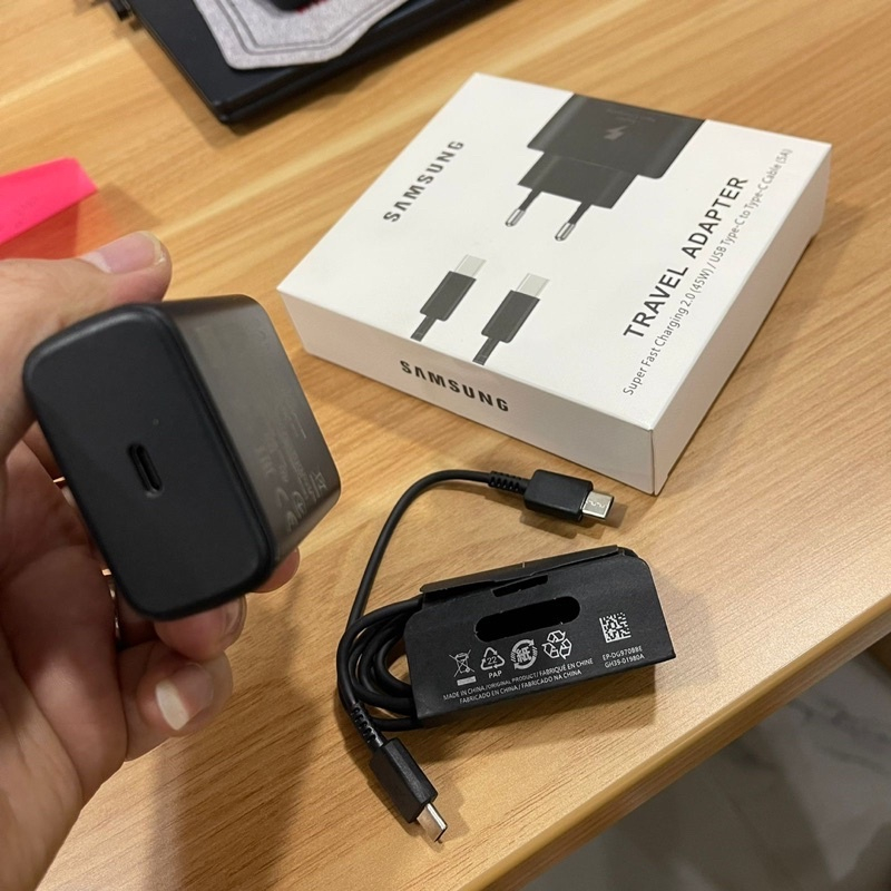 Handphone & Aksesoris > Kabel, Charger, & Konverter > Charger > TRAVEL CHARGER SUPER FAST 45W 100% SAMSUNG GALAXY S23 ULTRA USB TYPE C KE TYPE C BY SMOLL