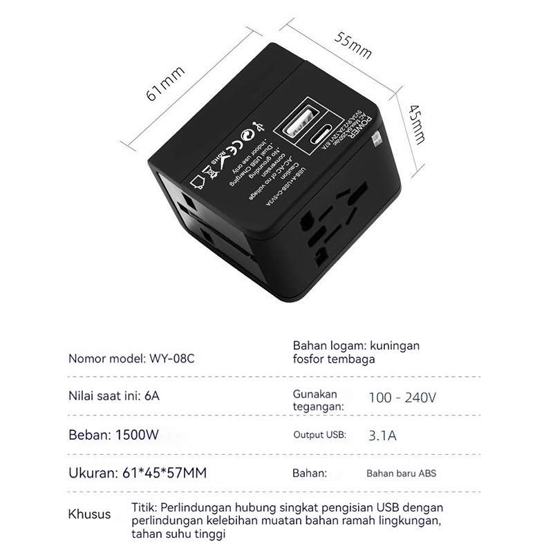 Hanya 1 pengisi daya perjalanan untuk semua soket Sangat mudah untuk mengisi daya semua perangkat Anda, bukan? Untuk adaptor perjalanan, (garansi 3 bulan, kerusakan non-manusia)
