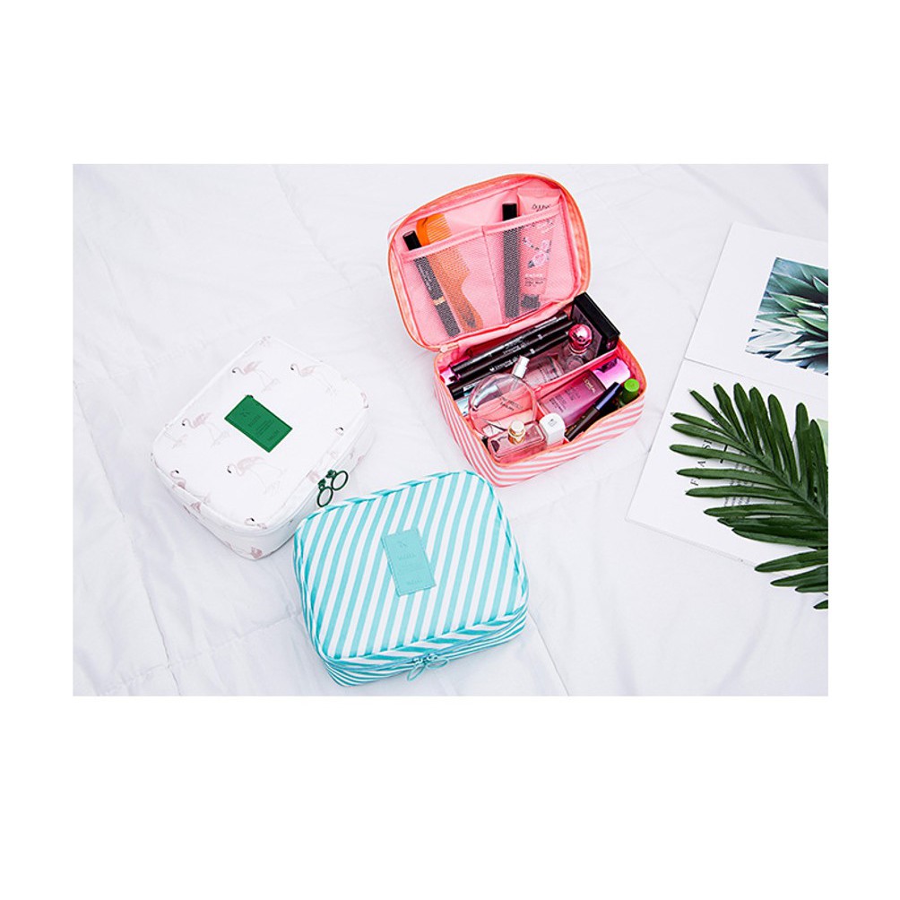 Dilengkapi dengan tali jinjing sehingga mudah dibawa kemana-mana. Memiliki desain yang sederhana dan terbuat dari bahan yang tidak mudah rusak ketika dicuci/dibersihkan untuk digunakan kembali. Perjalanan pun menjadi lebih mudah dan menyenangkan! Tas ini adalah wadah untuk menyimpan berbagai macam perlengkapan saat travelling terutama alat2 make up yg merupakan salah satu barang yang tak akan terlupakan dibawa oleh wanita.