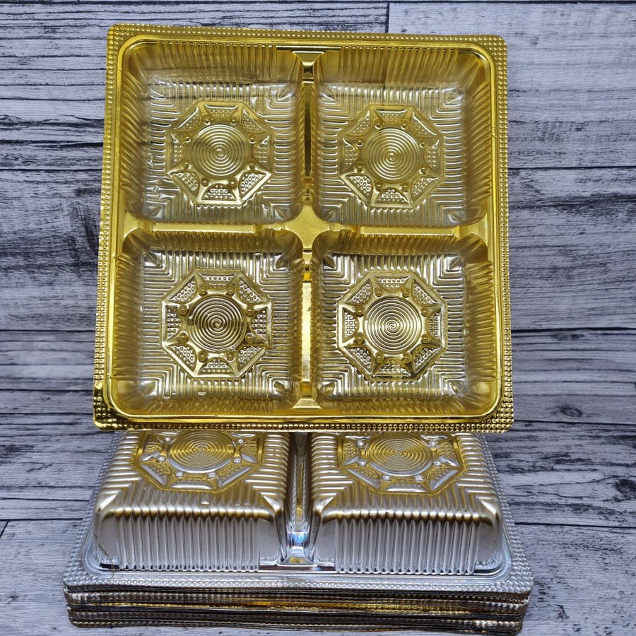 Detail tray mika 17.5cm sekat 4 mooncake 100-125gr kantong bungkus kue bulan / tray kue 4 lubang