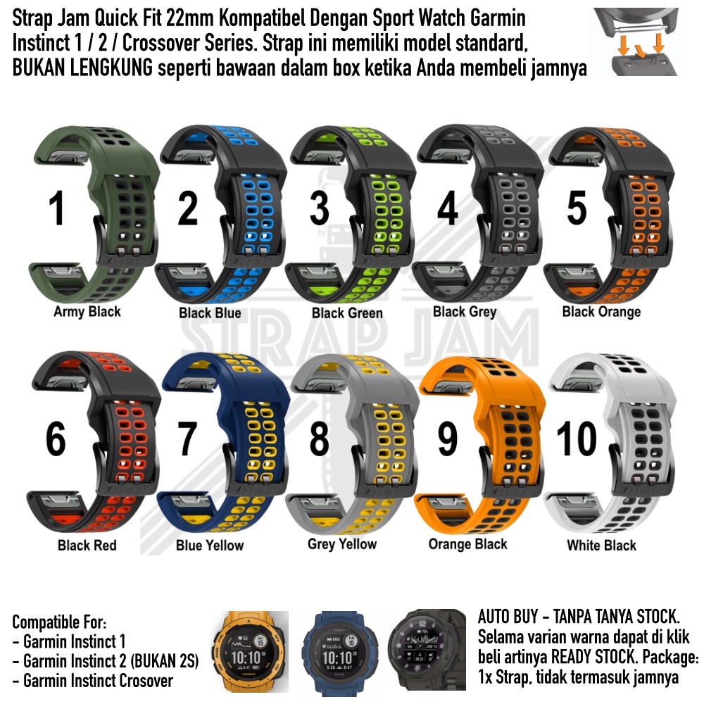 Detail TRD Strap Garmin Instinct 1 2 Crossover - Tali Jam Quick Fit 22mm Silikon Rubber Untuk Olahraga