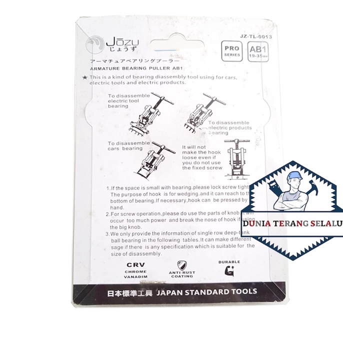 Treker Bearing JOZU AB 1 CRV Black Oxide - Armature Bearing Puller AB1 ( 19 x 35 mm) - Treker Bantalan Laher- Trecker Bearing AB-1 JOZUTreker Bearing JOZU AB 1 CRV Black Oxide - Armature Bearing Puller AB1 ( 19 x 35 mm) - Treker Bantalan Laher- Trecker Bearing AB-1 JOZUTreker Bearing JOZU AB 1 CRV Black Oxide - Armature Bearing Puller AB1 ( 19 x 35 mm) - Treker Bantalan Laher- Trecker Bearing AB-1 JOZUTreker Bearing JOZU AB 1 CRV Black Oxide - Armature Bearing Puller AB1 ( 19 x 35 mm) - Treker Bantalan Laher- Trecker Bearing AB-1 JOZU