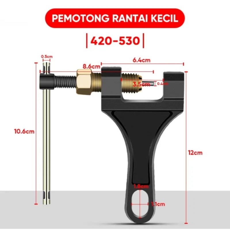 Fitur: 1.Pemotong rantai ini dapat digunakan untuk memotong rantai 420, 428 dan 530. 2.Dijamin perforasi akurat dari pin tembak 3.Jika ada masalah kualitas, ISKU store menjamin hak Anda. Dapat dikembalikan atau ditukar 4..Bahan: Besi