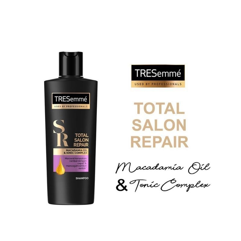 TRESemmé Total Salon Repair dengan Ionic Complex merawat dan memperbaiki dengan cepat rambut rusak akibat treatment salon seperti di bleaching, cat ombre, highlight, smoothing atau akibat styling rambut lainnya. Selain memperbaiki, kandungan Macademia Oil akan menjadikan rambut lebih lembut dan mengembalikan kilau rambut yang kusam. Selanjutnya, dengan Brazil Nut Oil dan Chia Seeds Oil, TRESemmé Total Salon Repair bukan hanya memperbaiki namun juga mencegah kerusakan rambut dan membuat rambut tampak lebih sehat. Untuk menutrisi dari akar, Tea Tree Oil membuat rambut tumbuh kuat dan mengurangi rambut rontok. Dapatkan rambut salon seperti idaman kamu tanpa khawatir rambut rusak!