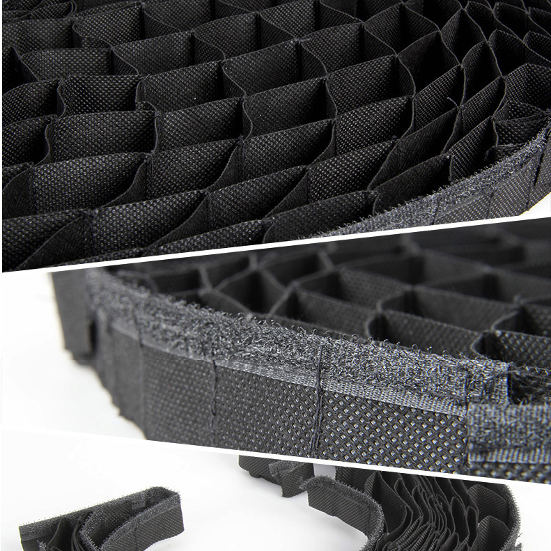 Fitur Kontrol Penyebaran Cahaya Untuk hasil pencahayaan yang lebih bagus Anda perlu memasangkan grid ini untuk softbox Anda. Fungsi dari grid sendiri adalah untuk mengontrol penyebaran cahaya yang keluar dari softbox, mempersempitnya, dan mengarahkannya ke area yang diinginkan. Dengan menggunakan grid, Anda dapat memfokuskan cahaya pada subjek Anda secara lebih presisi, mengurangi penyebaran cahaya ke area yang tidak diinginkan, dan menciptakan pencahayaan yang lebih terarah.