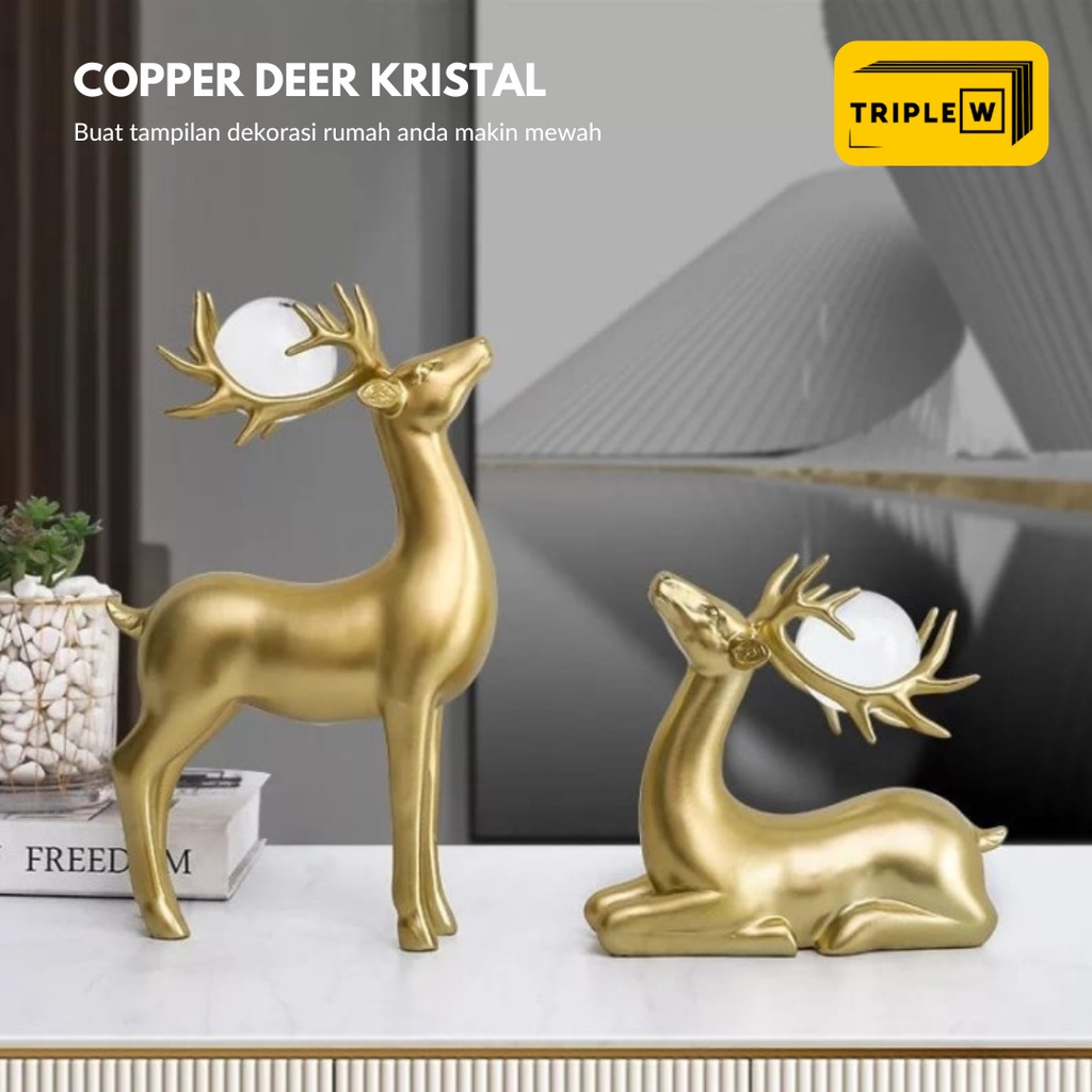 Detail Triple W (2pcs) Copper Deer Kristal Pajangan Hiasan Meja Dekorasi Rusa