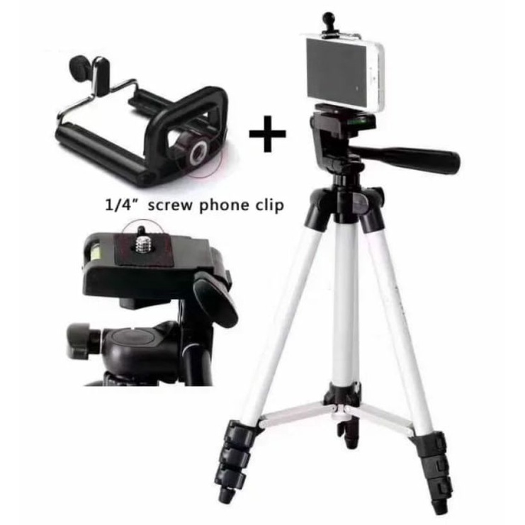Deskripsi Produk: - Berat: 420 gram - Tinggi Maksimum: 105 cm, Tinggi Lipat: 35 cm - Kapasitas Muatan: 3 Kg - Terbuat dari Paduan Aluminium Kelas Tinggi - Kunci Kaki Flip Cepat - Panhead 3 arah - Pelat Rilis Cepat & Level Gelembung - Kompatibel untuk smartphone untuk (termasuk pemegang U n case) - Merk: 3110A