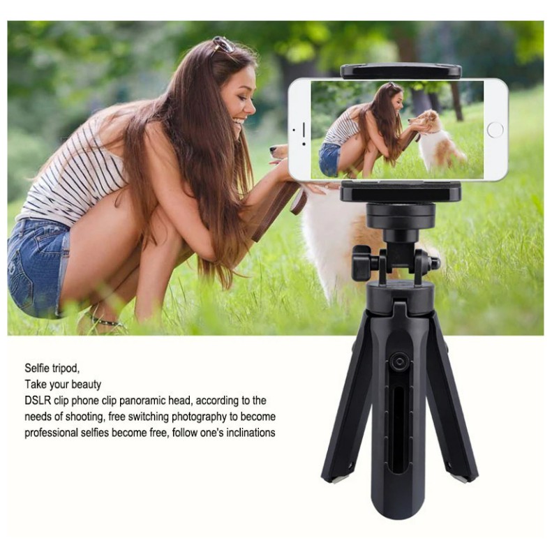 Spesifikasi: Nama: Braket tripod mini Bahan: ABS Berat: 123,9g Ukuran terpanjang: elastis 28cm Ukuran terpendek: Dilipat sesingkat 23cm Fitur: Rotasi 360degC, ringan dan nyaman