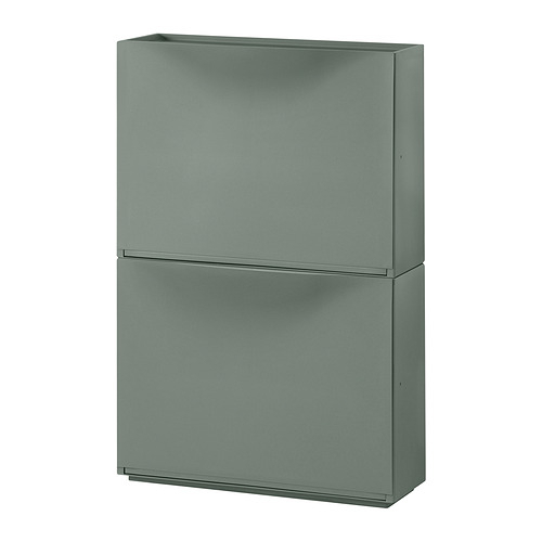 Lemari tidak memakan banyak ruang karena dangkal, dan cocok untuk menyimpan sepatu, sarung tangan dan skarf. Jika kebutuhan penyimpanan anda berubah, anda dapat menciptakan penyimpanan tambahan dengan menumpuk beberapa lemari atau diletakkan bersebelahan. Terdapat area tersembunyi di bagian atas lemari yang dapat anda gunakan untuk menyimpan benda kecil seperti kunci, uang receh dan telepon genggam. Pintu mudah dipindahkan jika anda ingin membersihkan bagian dalam lemari. Informasi tambahan