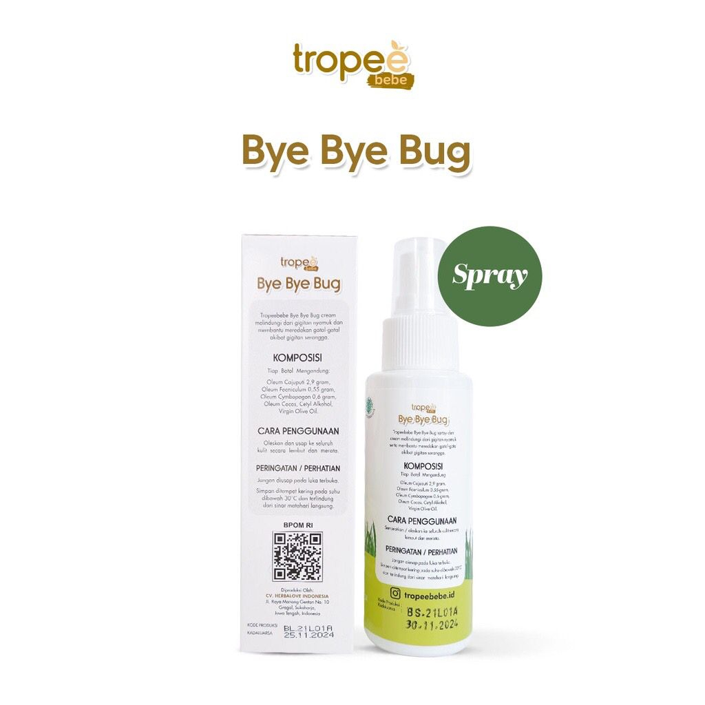 Detail Tropee Bebe - Bye Bye Bug Spray 100ML (6M+) HALAL dan BPOM/semprotan spray anti nyamuk anak bayi/olive oil/ minyak zaitun/ travel pack/ travel size/ buh bye bye bugs/ citronella/ aman kulit sensitif