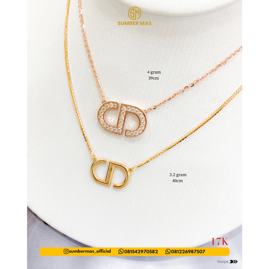 Nama Barang : TRUELOVE & CD NECKLACE Berat : 2.9gr - 3.2gr Variasi : Rose Gold Kadar Emas : 17K (750) Keuntungan Membeli Perhiasan di Toko Emas Sumber Mas