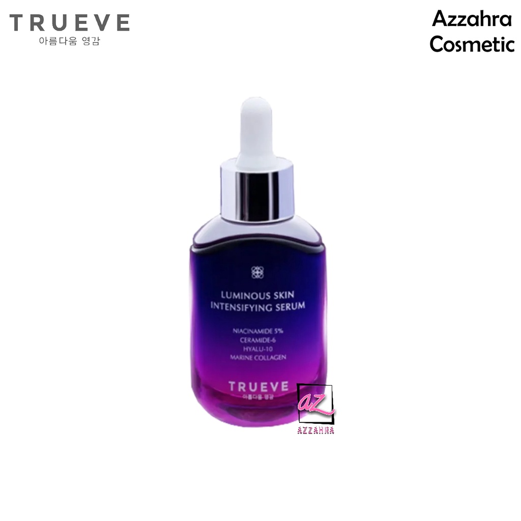 Trueve Luminous Skin Intensifying Serum diformulasikan dengan komponen utama Niacinamide dan Ceramide yang dapat mencerahkan kulit, menyamarkan noda hitam, mengontrol produksi minyak berlebih, membantu meratakan warna kulit, serta mempertahankan kelembaban kulit.