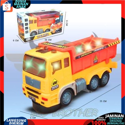 🎯Jenis / Type Produk Yang Ada DI Etalase : 🚗 Mobil Baterai TRUCK Construcion MOBIL BATERAI TANPA REMOTE 🔋Baterai Dijual Terpisah Type AA UKURAN SEKITAR : 152mm X 55mm X 78mm ✅Dinamo : High Speed ✅BATERAI MOBIL MENGGUNAKAN TYPE AA 2PCS ✅Ada suara Dan lampu ✅Bisa Berbelok sendiri ketika menabrak sesuatu ✅Motif Mobil : Truck,tangki, molen, crane"