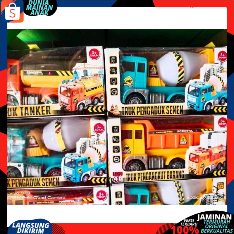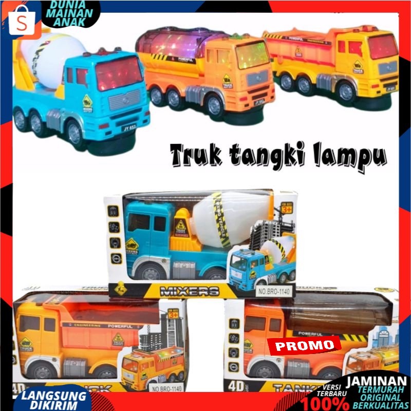 Video perkenalan produk Truk tangki lampu Mainan truk tangki bump & go mainan mobil truck builder tank truk molen Bersuara Dan Berlampu. Sumber: Shopee.