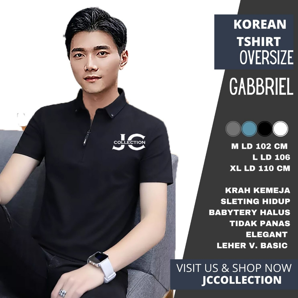 Tshirt Pria Pendek / Kaos Lengan pendek Pria Gaya Korea variasi Sleting Gabriell