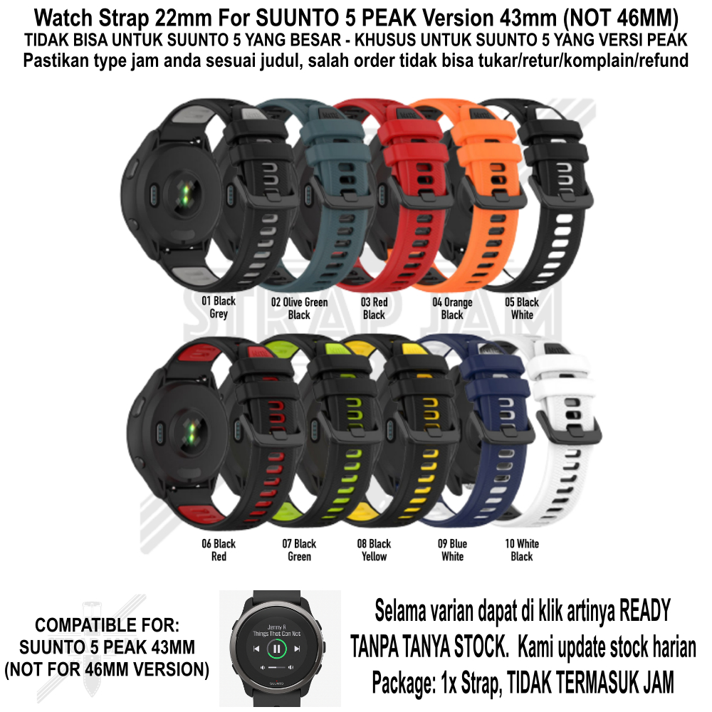 Detail TTC 22mm Tali Jam Suunto 5 Peak 43mm (VERSI PEAK) - Strap Olahraga Silikon Sporty Two Tone Quick Release