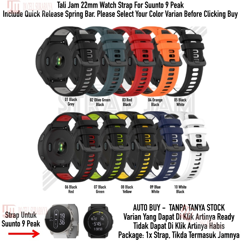 Detail TTC 22mm Tali Jam Suunto 9 Peak Version - Strap Olahraga Silikon Sporty Two Tone Quick Release