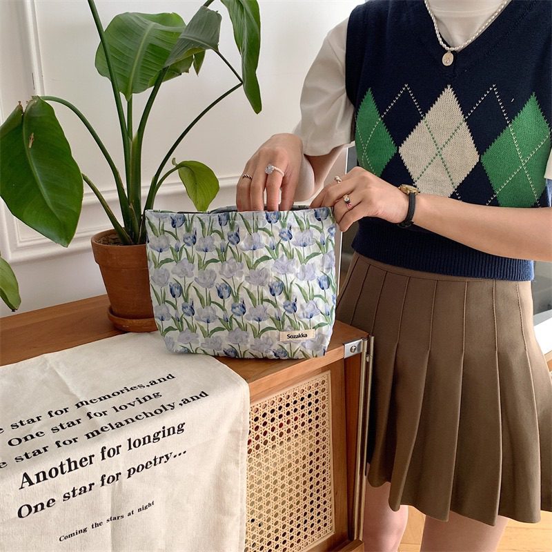 tulip korean pouch / tas make up skincare / travel organizer bag cosmetic motif bunga cantik premium lucu kekinian viral murah premium tempat dompet hp kunci serbaguna multifungsi PO32