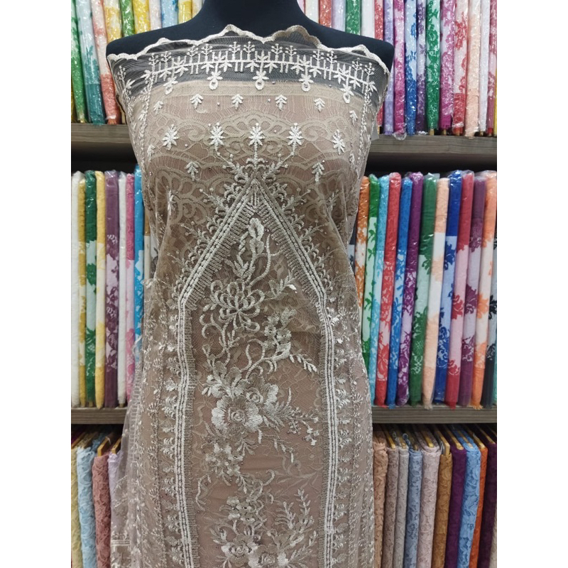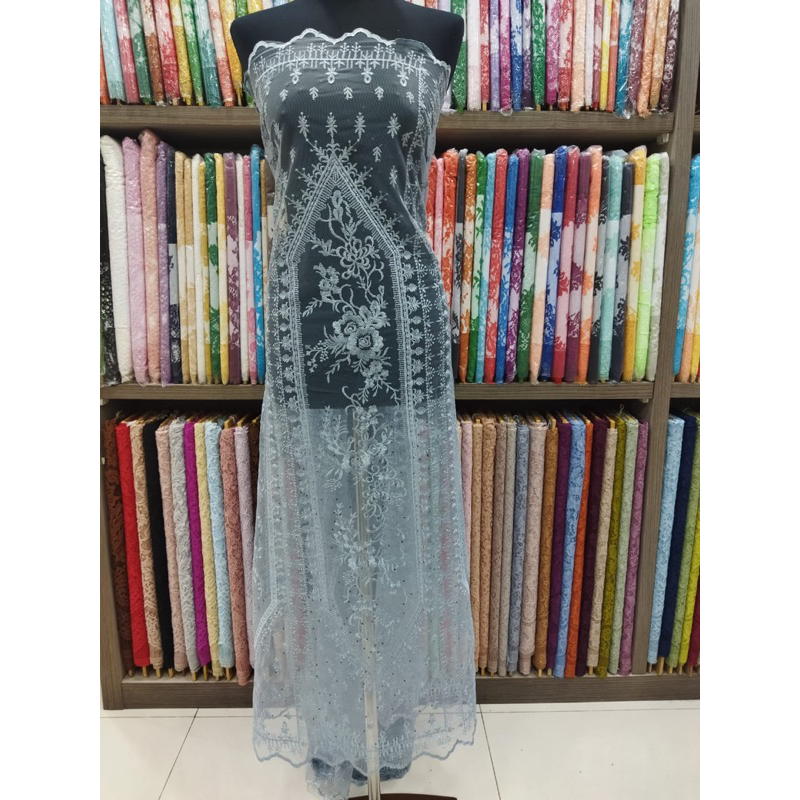 Deskripsi Tulle Embroidery Lebar Kain +- 1.35 Meter minimal order 1 mtr Material Dasar Brokat Halus Nyaman Dikulit, Rekomended Untuk Di Buat Gaun Pesta, Dress Dll