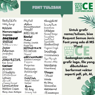 Cara order: 1. order diproduk dengan memasukan jumlah dan variasi warnanya. jika bingung sebelum order, bisa tanya dahulu. 2. Jika grafirnya tulisan atau nama saja, maka tuliskan NAMA + FONT YANG DIPILIH + POSISI DAN ARAH CETAK (ada di gambar kedua dan ketiga). Jika grafirnya ada logo, maka logo wajib dikirim ke chat. 3. Proses CETAK, Lama Pengerjaan 1-4 hari tergantung kuantitas 4. Proses KIRIM