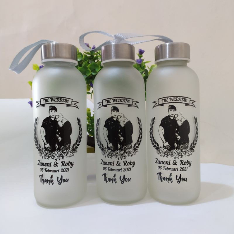 Tumbler Kaca Doff Sablon Custom Nama Logo Souvenir Pernikahan Wedding