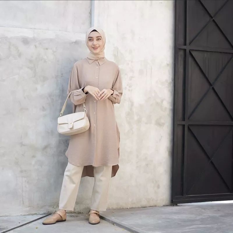 Kode produk : Grace tunik Detail produk ✔️ bahan: Crincle rayon ✔️ full kancing ✔️ busui friendly ✔️ wudhu friendly